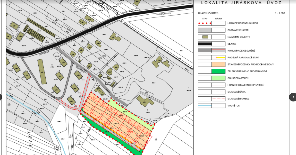 Bylo schváleno zadání studie Jižní spojka, jejíž vypracování požaduje Územní plán schválený v roce 2016 a seznámili jsme se vypracovanou studií Jiráskova, kde je navržena výstavba 7 rodinných domů developera pana Rapanta.