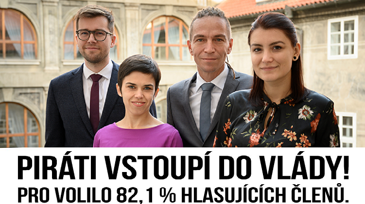 Praha, 15. listopadu 2021 - Členové a členky Pirátské strany v celostranickém hlasování odsouhlasili znění koaliční smlouvy, a tedy faktický vstup Pirátů do vlády. Podporu návrhu vyjádřilo 82,1 procent hlasujících (888 pro z 1082 hlasů). Hlasování zaznamenalo rekordní účast, zapojilo se 90,7 procenta Pirátů a Pirátek. Tedy 1082 ze 1193.