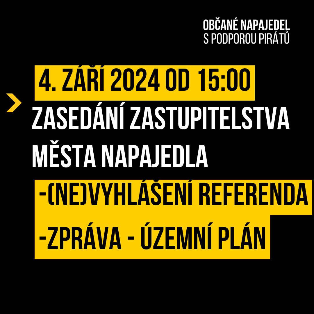 Již příští středu 4.9.2024 od 15:00hod. zasedne už po jedenácté Zastupitelstvo města Napajedla! My chceme, aby se co nejvíce lidí zapojilo do důležitých rozhodnutí o našem městě, proto dlouhodobě chceme jednání v prostorách kina, aby bylo dostatek místa pro všechny zástupce veřejnosti, nicméně vedení města se rozhodlo pro jednání v zasedací místnosti radnice!