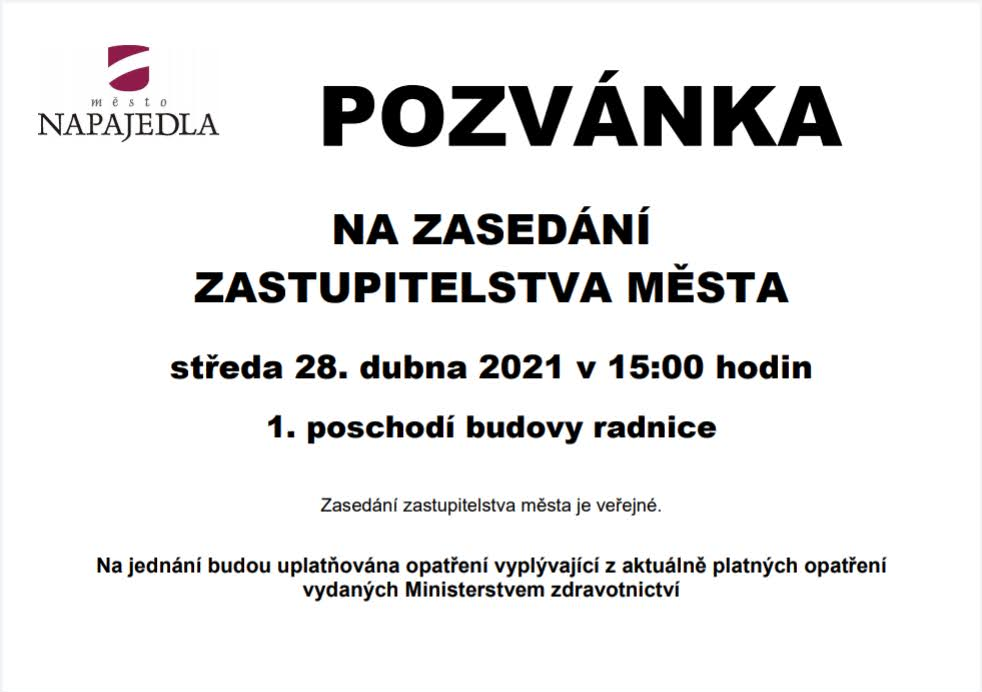 Ve středu 28.4.2021 proběhne 14.té zasedání zastupitelstva města od 15.00hod.
