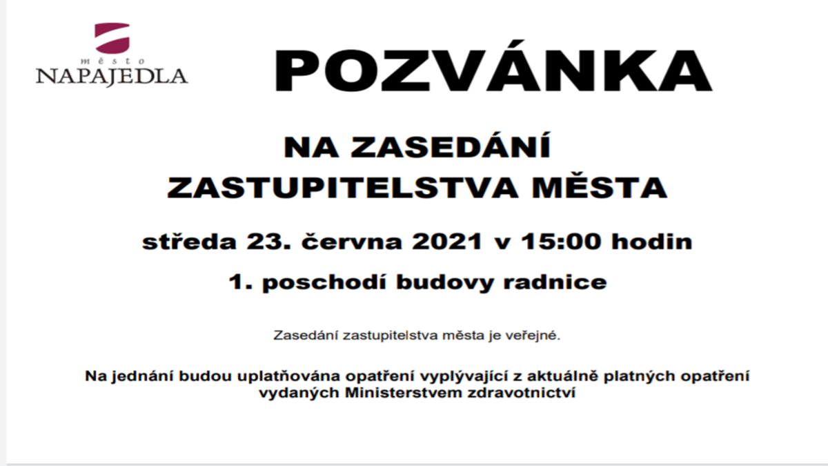 Ve středu 23.6.2021 proběhne 15.té zasedání zastupitelstva města od 15.00hod.