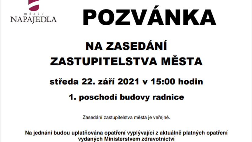 Ve středu 22.9.2021 proběhne 16.té zasedání zastupitelstva města od 15.00hod.