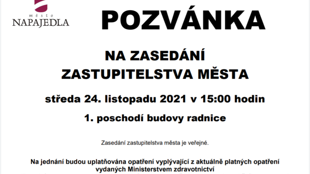 Ve středu 24.11.2021 proběhne 17.té zasedání zastupitelstva města od 15.00hod.