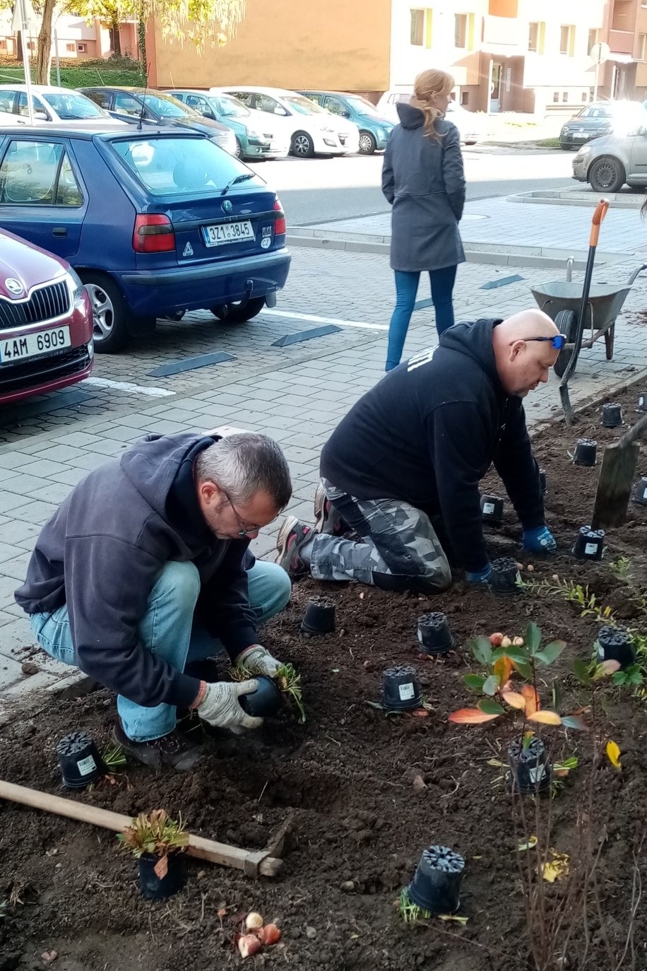 Akci jsme úspěšně zakončili o půl páté - vysazeny byly tři alejové stromy a šest záhonů s keři, trvalkami a cibulovinami.
